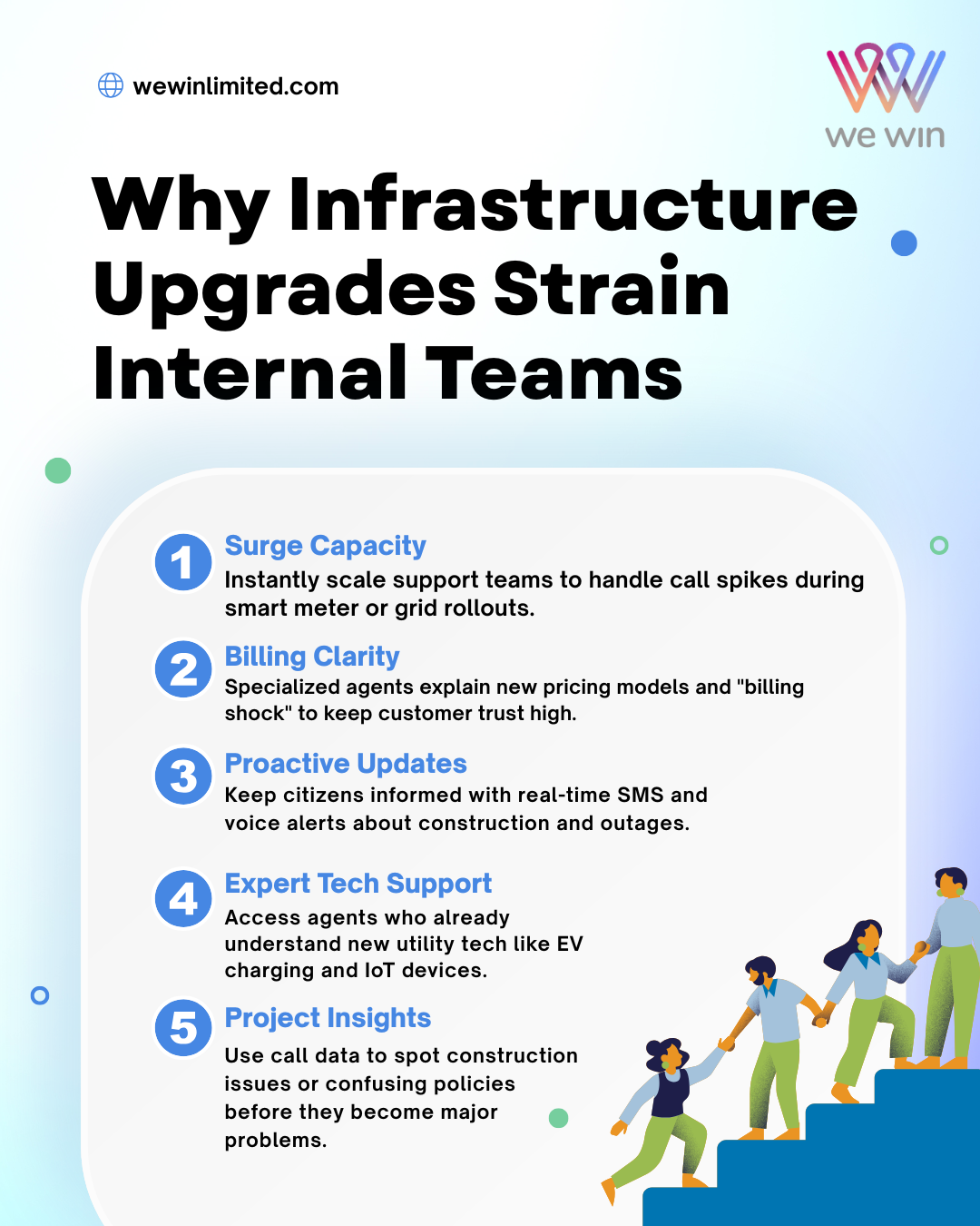 At We Win, we understand that during a period of technical change, the "human element" of customer support is what prevents a project from becoming a public relations crisis. Here is how BPO serves as the backbone of customer satisfaction during utility modernization.